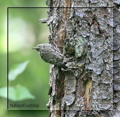 In the darknes of the forest a bird is singing. It took me a long while to locate it. I got one decent shot of it. But as I am bad on the songs I had to take the ID from a video where I could recognize the song. It is a Grönsångare - Phylloscopus sibilatrix - Wood Warbler